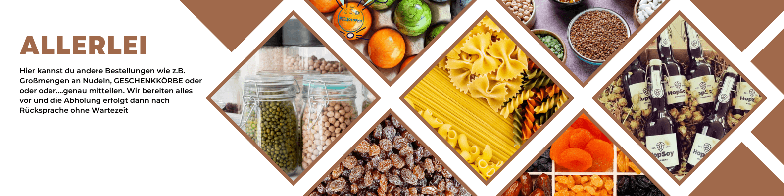 Wir bestellen den Tofu für Euch direkt bei den Hersteller:innen. Die Bestellung sollte am 1. Samstag im Monat bis 12 Uhr SCHRIFTLICH bei uns eingehen. Die Abholung erfolgt ab dem darauf folgenden Donnerstag, 12 Uhr bis Samstag.